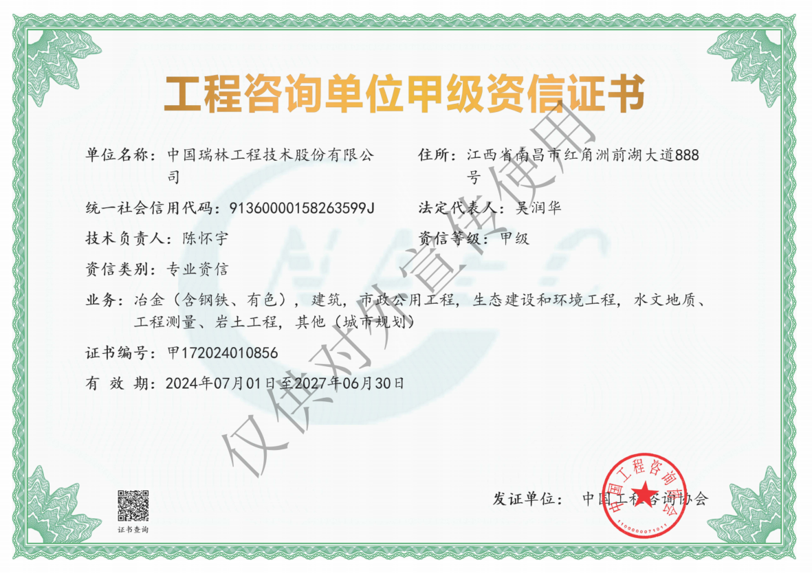 有色乐竞(中国)咨询行业唯一一家!中国瑞林再获一项甲级“综合资质”(资信)证书
