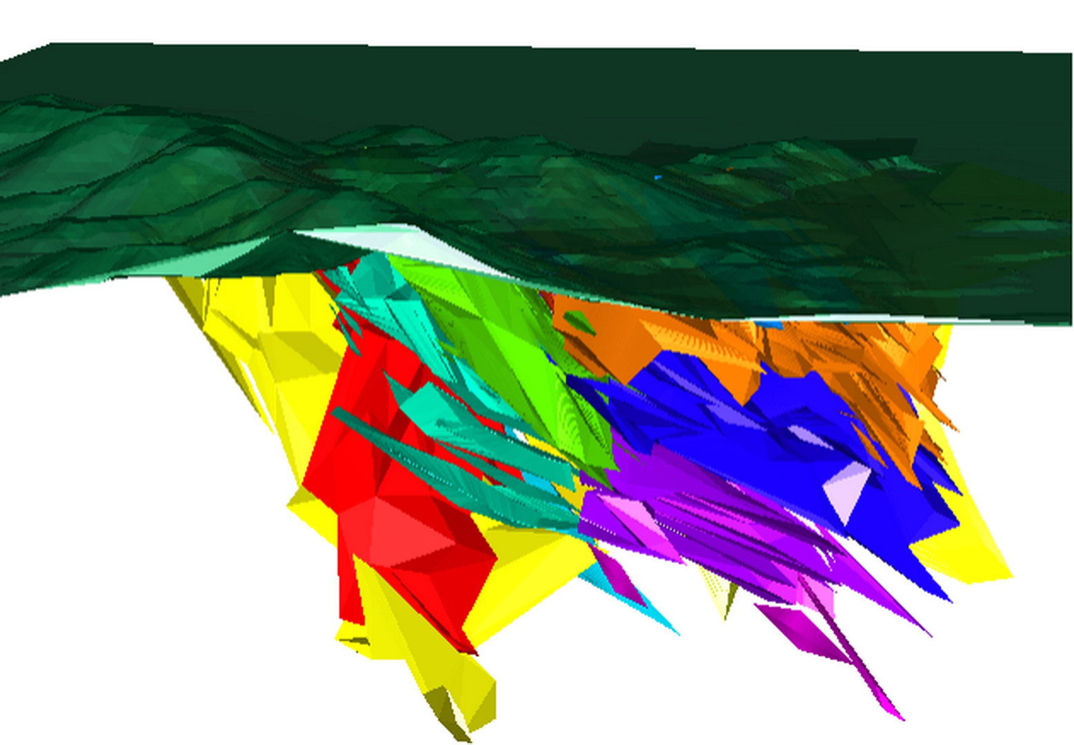 中国瑞林运用国际先进矿业软件构建的三维地质模型