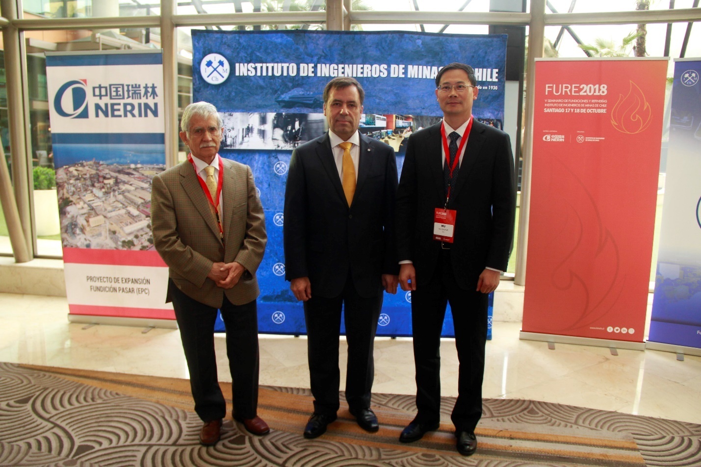 The Seminar of Smelters and Refineries in Chile is an annual grand meeting of the Chilean copper industry organized by IIMCh (Instituto de Ingenieros de Minas de Chile / Institute of Engineers of Mines of Chile), aiming to build a platform for upstream and downstream enterprises in the Chilean copper industry chain to exchange technologies and share experience, so as to promote sustainable development of copper industry in Chile. Since China Nerin, an important partner of both CODELCO (Corporación Nacional del Cobre de Chile / National Copper Corporation of Chile) and ENAMI (Empresa Nacional de Mineria de Chile / National Enterprise of Mining of Chile), has established its South America Agency and made positive progress in Chile's market development, its President Wu Runhua, Senior Technical Director Yao Suping, South America Agency General Manager Xia Wei, Deputy Chief Engineer Yu Lei, and Metallurgical BU Deputy General Manager Tang Bin led a delegation of 7 people to attend the seminar and were warmly greeted by the organizer and the guest participants.